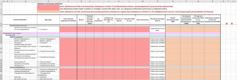Исходный файл-шаблон, в котором визуально подкрашены необходимые для заполнения поля: