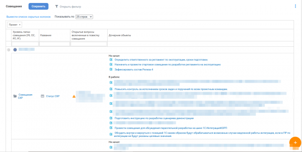 Система позволяет настроить отчет с отображением всех проектных совещаний: