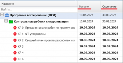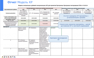 2. Заданные критерии прохождения КР для всех проектов программы, проверка достижения контрольных рубежей.