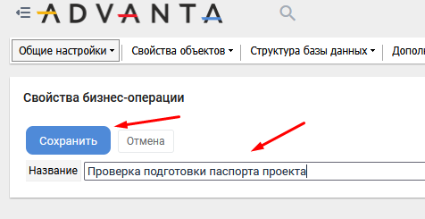Введите название новой бизнес-операции и нажмите «Сохранить»:
