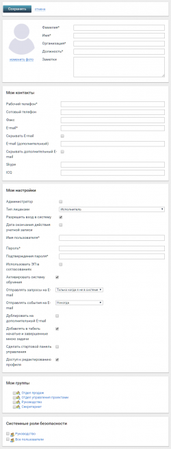 Рисунок 1 – Страница создания/редактирования нового пользователя