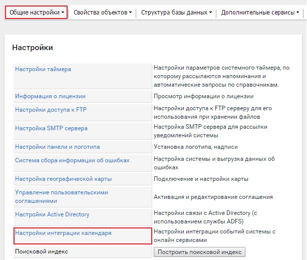 2. пользователь/администратор должен в профиле пользователя включить связь с календарём.