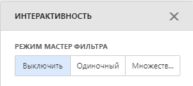 Функция интерактивности позволяет установить дополнительные параметры работы с фильтрацией по выбранному виджету и позволяет установить, должны ли влиять Внешние фильтры (фильтры в других виджетах дашборда) влиять на выбранный виджет, и наоборот.