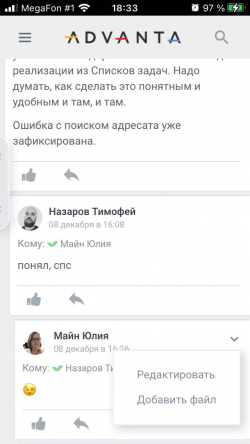Если у вас есть в задаче реквизит-файл, его также можно прикреплять к задаче через список задач с мобильного телефона.