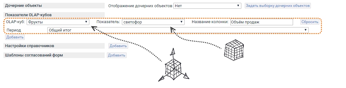 2. в блоке показатели OLAP-кубов → Добавить;