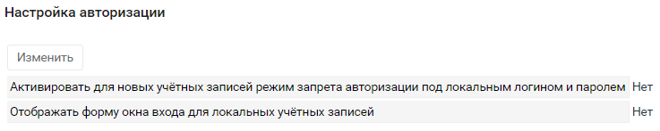 При переходе в настройку «Авторизация» открывается новое окно с возможностями настройки.