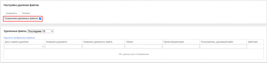 Начиная с версии системы 3.29 для Администратора стало доступно управление резервным хранением удаленных файлов. В разделе Администрирования на странице «Общие настройки» в группе «Настройки» добавлен пункт «Удаление файлов».