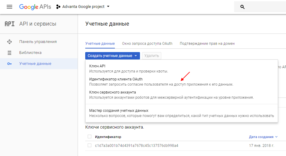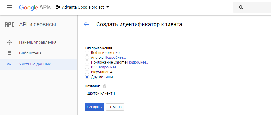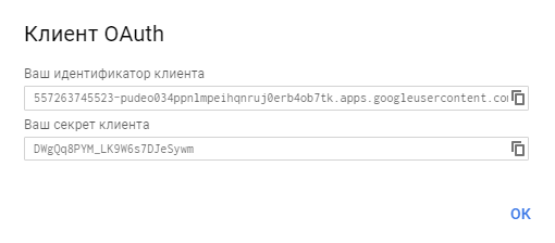 Рисунок 9 – Создать идентификатор клиента OAuth