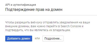 Если при добавлении домена возникла ошибка, значит у используемой учетной записи Google нет доступа к указанному домену, либо домен неверно заверен в сервисе Webmaster tools.