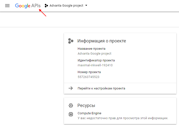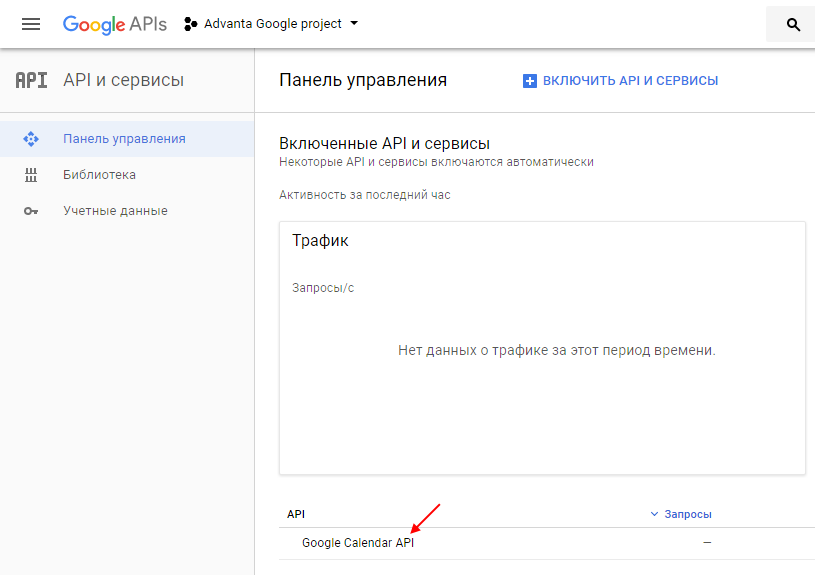 5. Перейдите в панель управления и проверьте список включённых для проекта API (Рисунок 7)