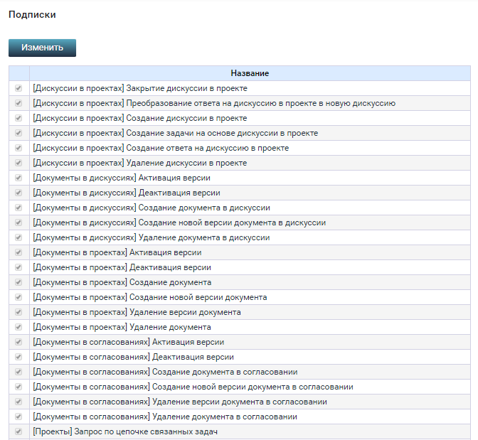 На часть событий пользователь подписывается автоматически при получении полномочий Руководителя/Исполнителя/Участника в проекте/задаче – на пользователя работает настройка подписки той роли, которая ему назначена по этому объекту.