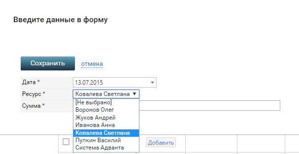 После ввода данных при создании (редактировании) записи, необходимо нажать «Сохранить» в форме для ввода данных (Рисунок 2), либо !knopka_sohranit.png! при создании (редактировании) записи в строчной форме (Рисунок 3).