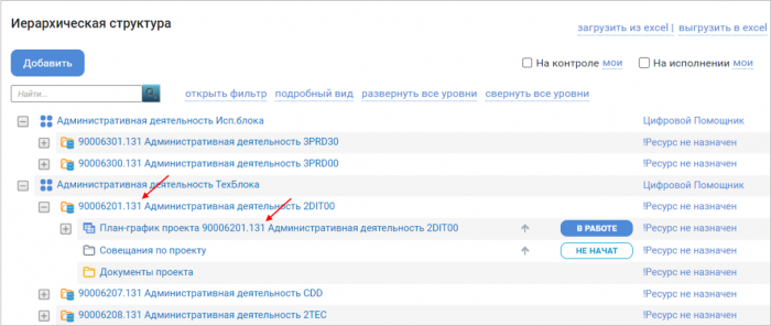 • Создайте проект из шаблона, в него уже будут включены дочерние объекты с типовыми названиями (каталоги, план-график и др.)