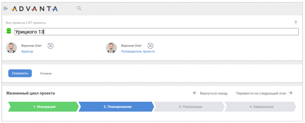 • Откройте карточку проекта в режиме редактирования и заполните его название